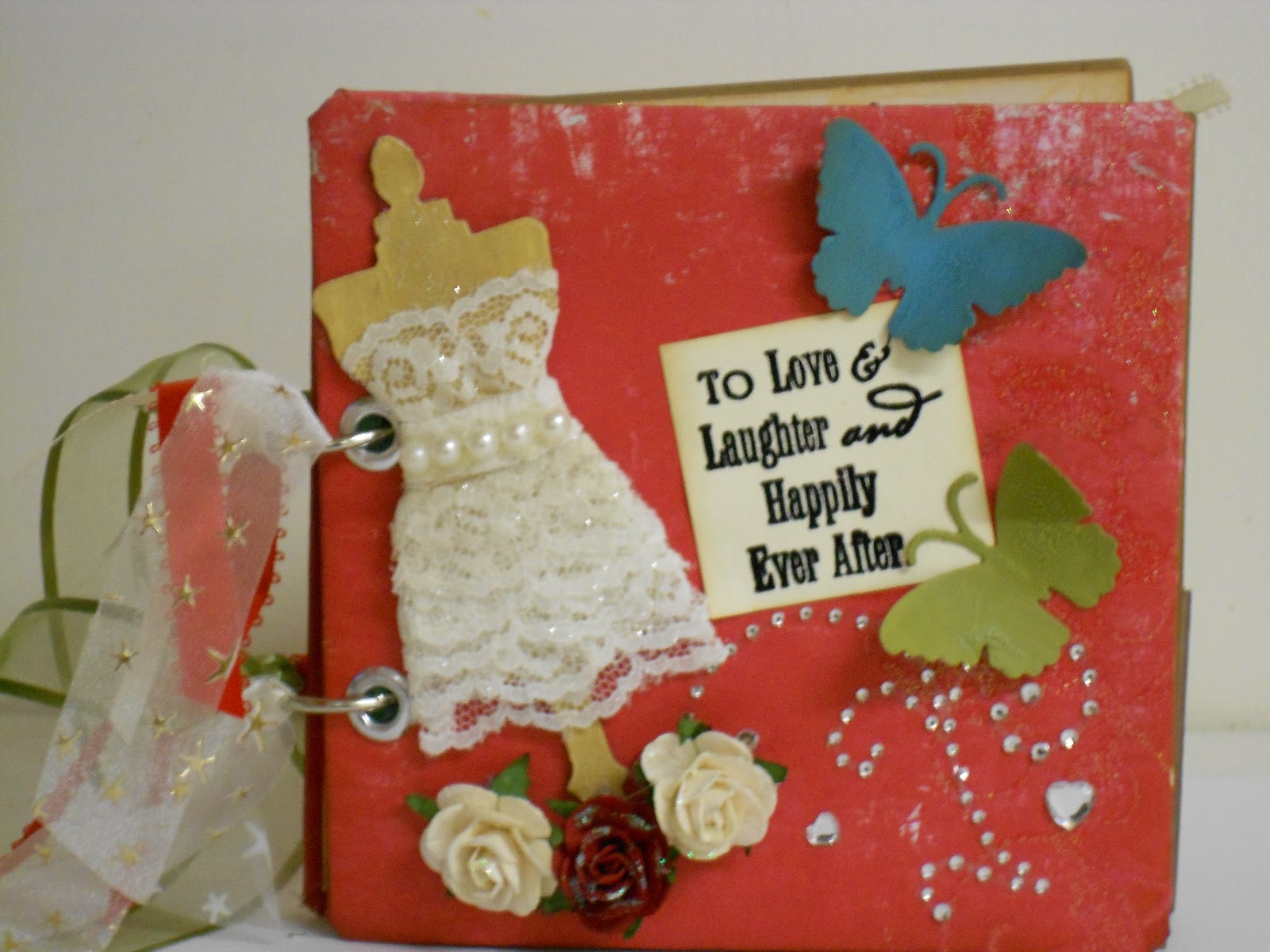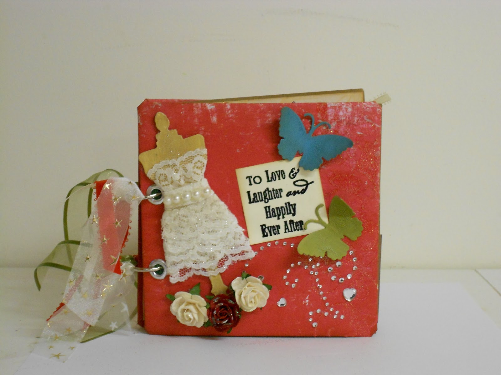 I just completed this 6x6 mini album for my cousin's fiance. I used a bunch of distressing techniques to get the effects I was looking for. I hope you like it.